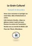 Les Petites Mains du Téléthon + Ajouter à mon Agenda Google + iCal / Outlook export Date 28 Nov 2025 - 14 Déc 2025 En cours... Heure 08:00 - 18:00 Partagez cet événement décembre 2025 Déc 06 - 17 2025 TÉLÉTHON Déc 13 2025 Le Grain Culturel Déc 13 - 14 2025 Marché de noël Déc 17 2025 Médiathèque Pas d'événement actuellement programmé.
